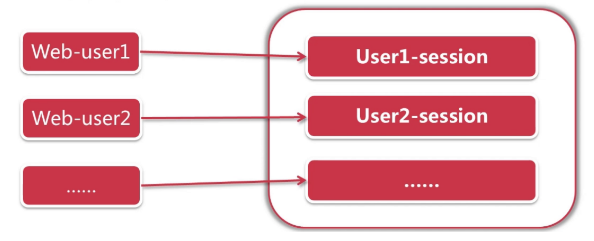 正常的web开发,每次来一个用户就会产生一个session,在客户端会受到sessionId的概念,每个用户有个独立的session会话,如果100个用户进来就会产生100个session的会话。如果这个会话消失了,用户的没有在访问我们的网站,这就是我们日常使用最多的会话,成为有状态会话。