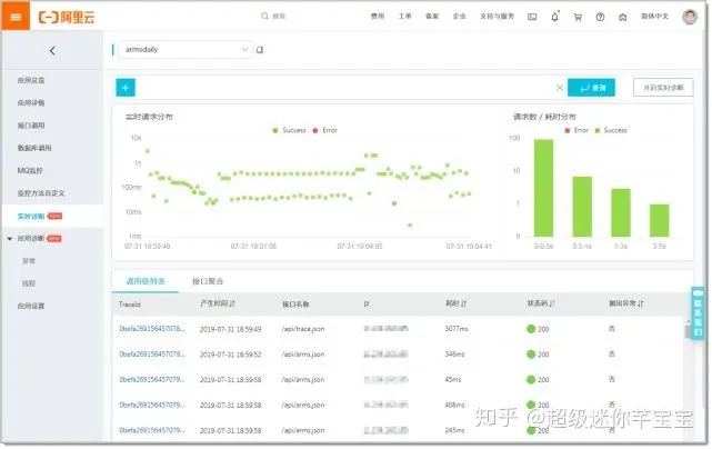 - 第二种是明细数据:用户通过统计值确认了特征以后,可以具体查看一个缓慢请求的执行过程,确认具体缓慢的方法或者慢SQL.