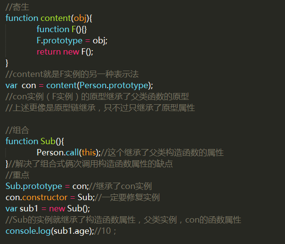 继承这些知识点与其说是对象的继承,更像是函数的功能用法,如何用函数做到复用,组合,这些和使用继承的思考是一样的。上述几个继承的方法都可以手动修复他们的缺点,但就是多了这个手动修复就变成了另一种继承模式。