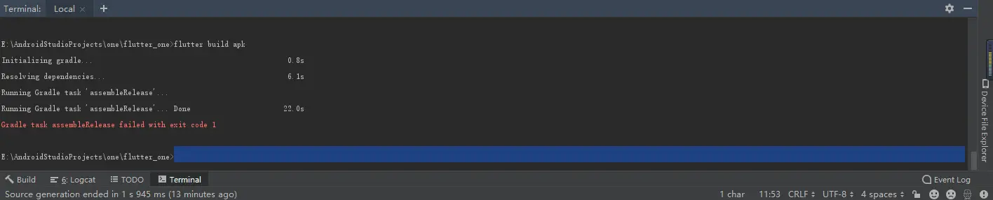 在flutter打包时遇上一个错误,最头疼的是没有抛出原因,各位大佬帮我看看