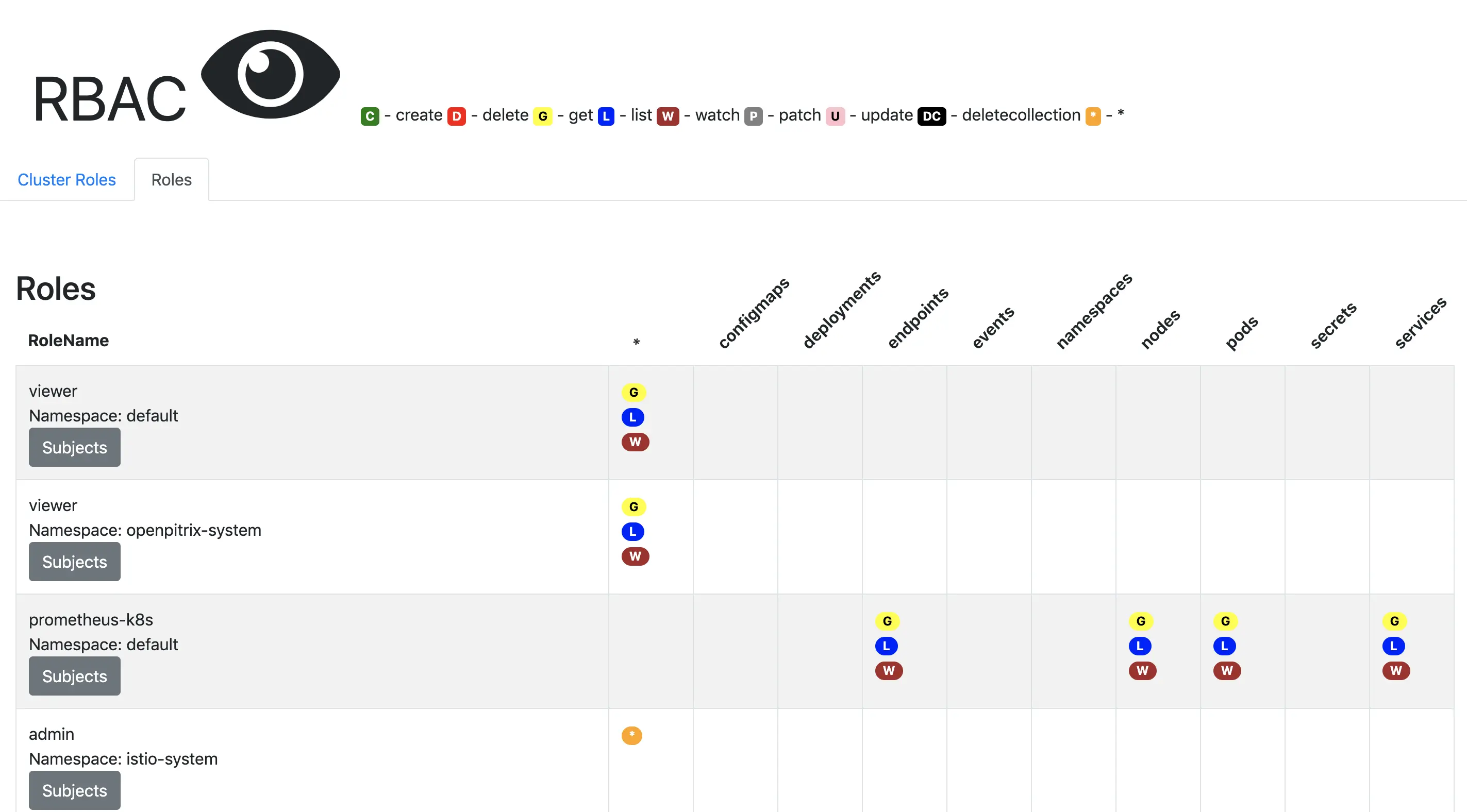 $ kubectl rbac-view