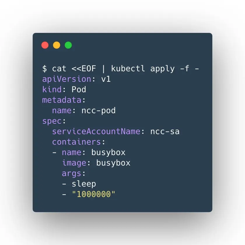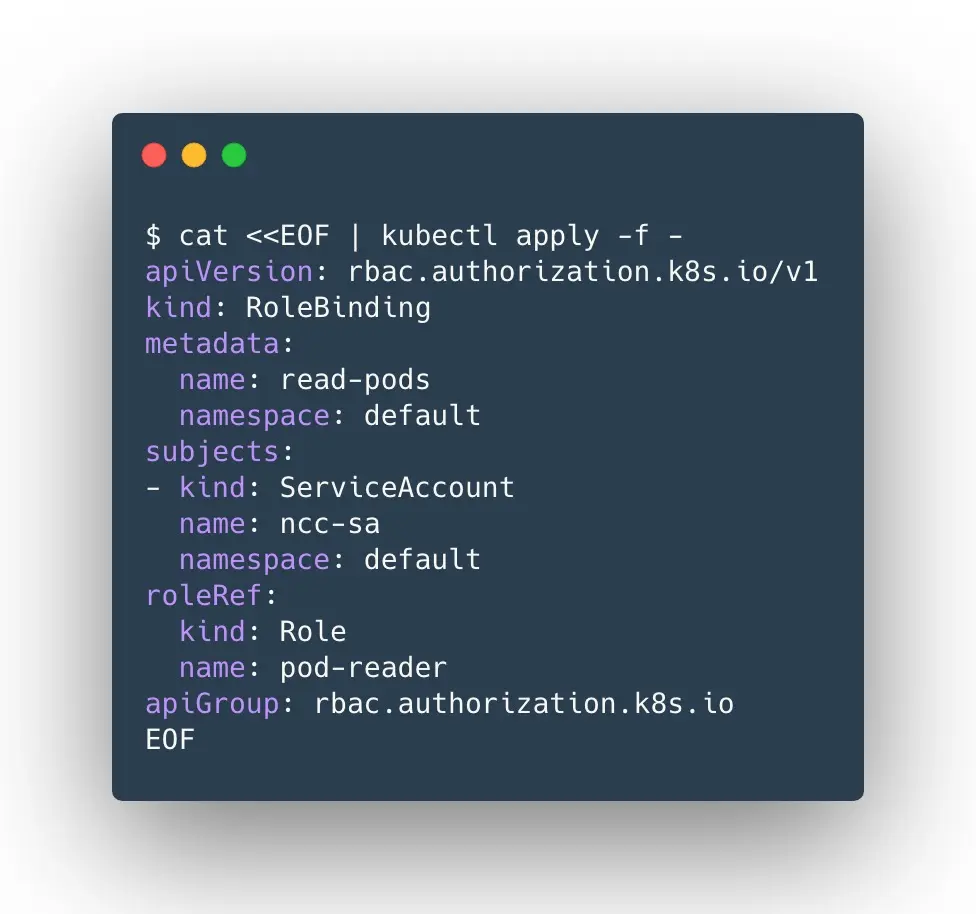 $ kubectl create serviceaccount ncc-sa