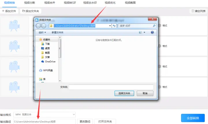 4、设置视频转换后输出到电脑的输出路径。设置时可以在输入框中写入或粘贴转换后的mp4格式输出到电脑的路径,也可以点击“更改路径”选择视频输出到电脑的路径。