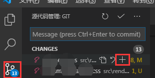 注意: 在vscode中提交某些文件可以通过添加缓存来达到,就不需要git add命令,如图