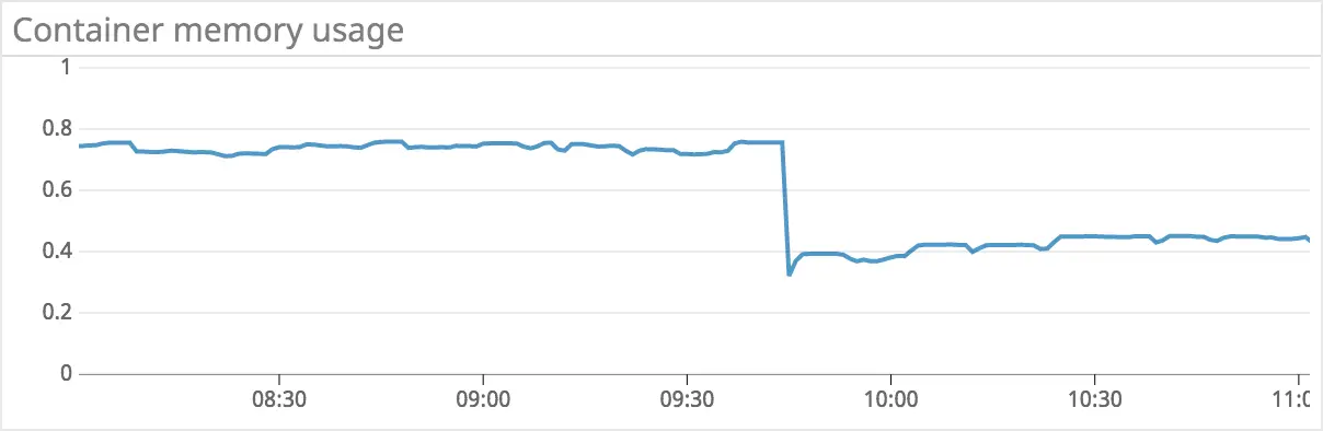 他在优化了他们的一个服务后,可以看到内存占用下降的非常明显: