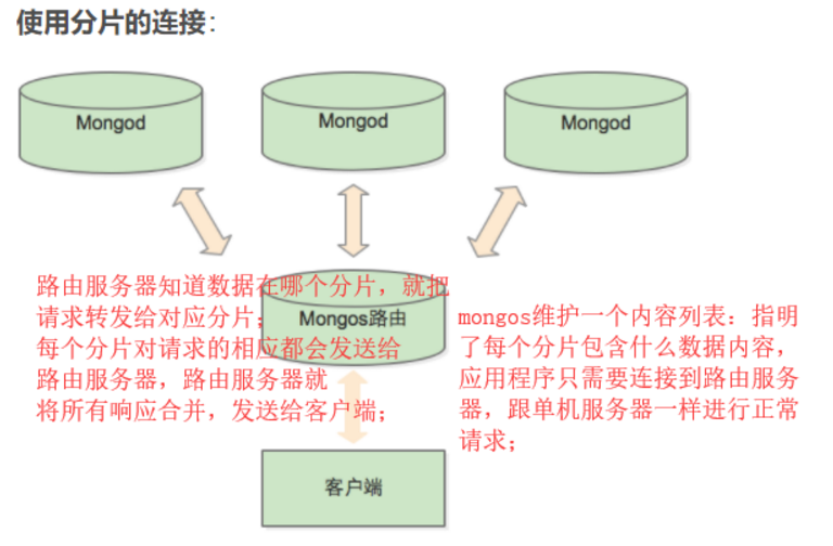 如果用mongoDB存储的话,数据量大,大量读写,吞吐量很大的情况下,单个server很难满足需求,所以需要用到mongoDB分片集群。(与关系型数据库中的分区方案对比???)