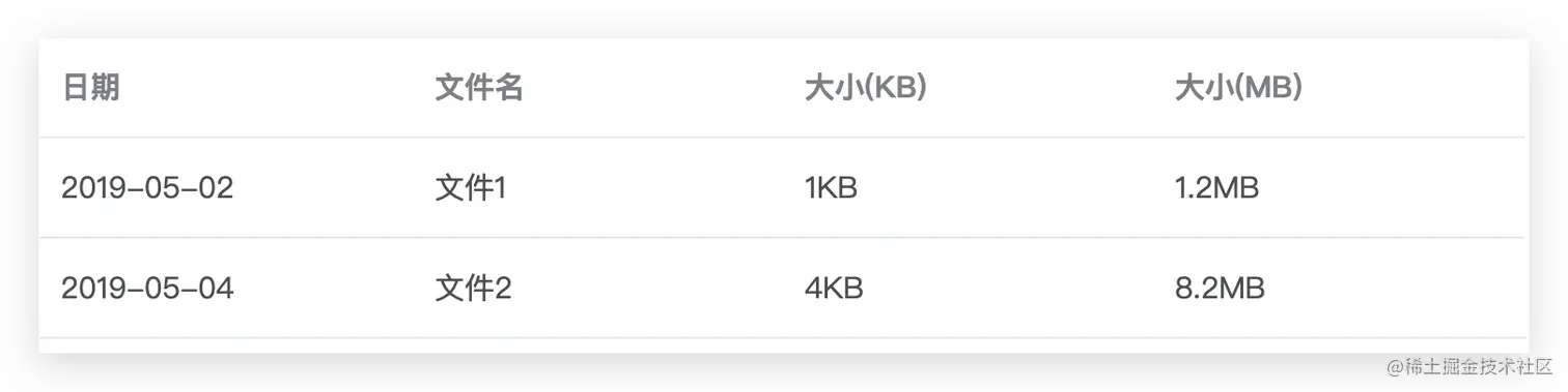 { date: '2019-05-02', name: '文件1', sizeKb: 1234, sizeMb: 1234426 },