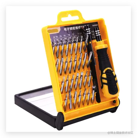 现在电子产品种类繁多,尺寸多种多样,有时候你会忍不住想拆开看看里面啥样(想想小时候拆的玩具车还有遥控器😅),但是螺丝规格很多,螺丝刀尺寸也不少,如果每碰到一种规格就买一个螺丝刀,家里就得堆满螺丝刀了。所以现在人们都用多功能的螺丝刀套装,螺丝刀把只需要一个,碰到不同规格的螺丝只要换螺丝刀头就行了,很方便,体积也变小很多。