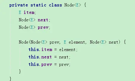 LinkedList中维护了双向链表的头节点和尾节点,让我们看一下节点的结构Node
