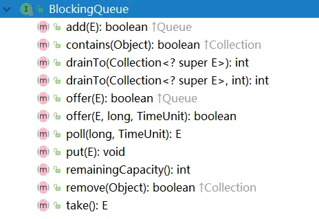 - offer(E e,long timeout, TimeUnit unit) : 用来向队尾存入元素,如果队列满,则等待一定的时间,当时间期限达到时,如果还没有插入成功,则返回false;否则返回true;