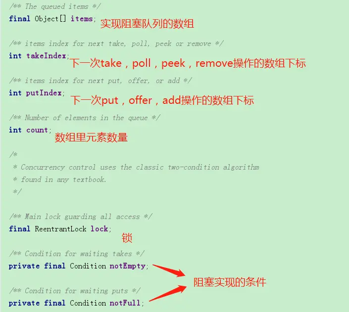 所以,阻塞队列的实现原理就是用ReentrantLock和Condition实现的
