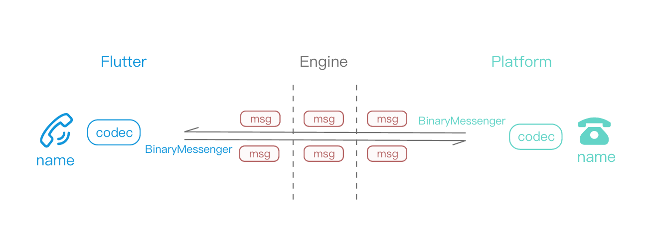 name:String 类型,表示 channel 的名字,全局唯一(The logical channel on which communication happens)codec:MessageCodec 类型,消息的编码解码器(The message codec used by this channel)binaryMessenger:BinaryMessenger类型,用于发送数据(The messenger used by this channel to send platform messages)