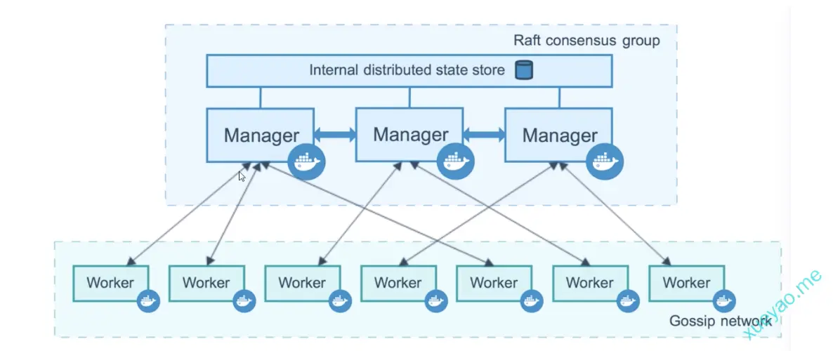- 管理节点用于Swarm集群的管理,docker swarm集合基本只能在管理节点执行。