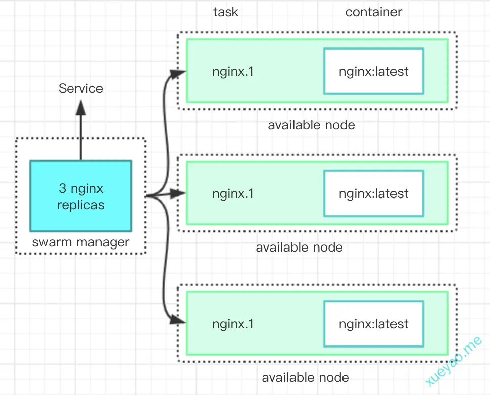 任务(Task)是Swarm中的最小的调度单位,目前来说就是一个单一的容器。 服务(Services)是指一组任务的集合,服务定义了任务的属性。