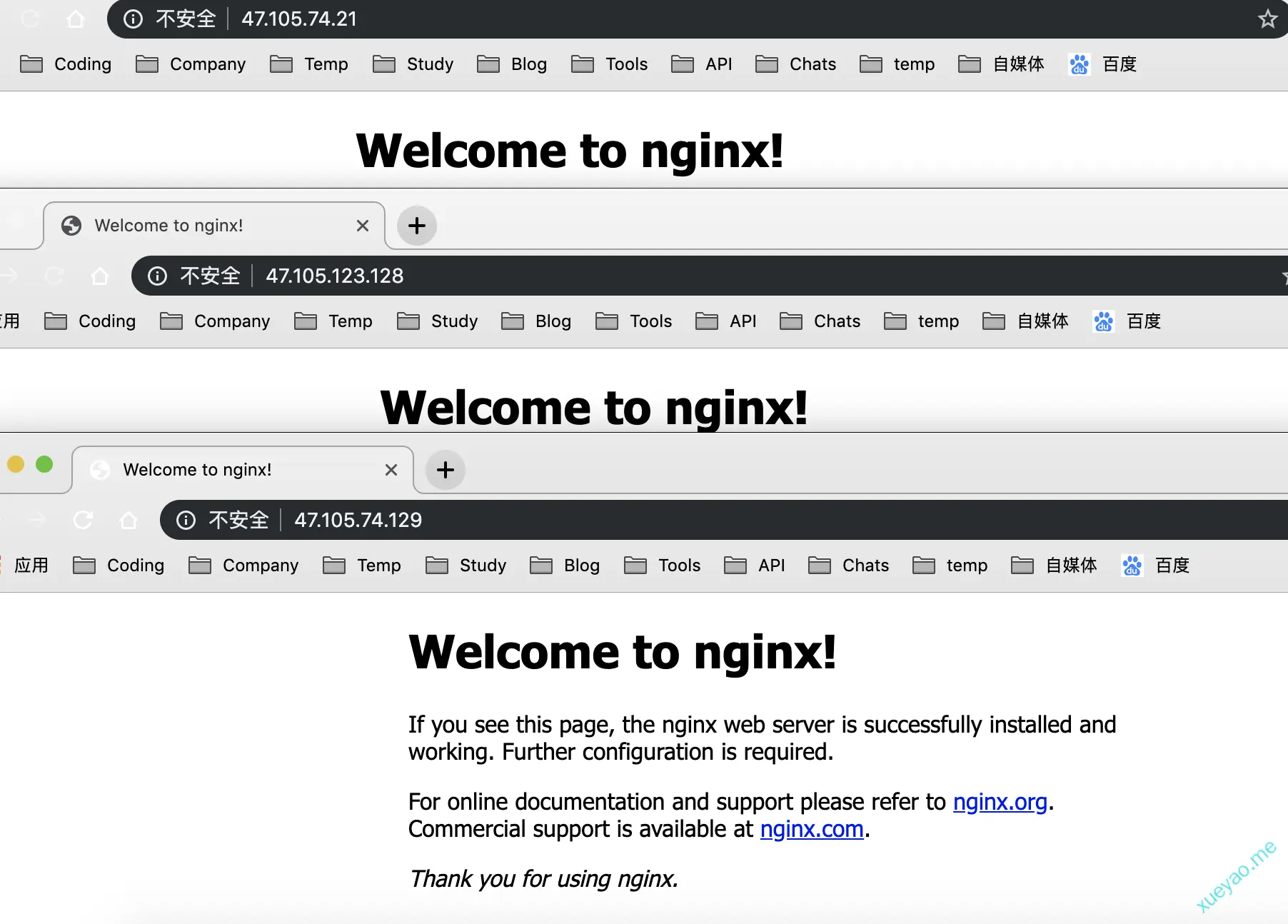 现在我们使用浏览器,输入任意节点IP,即可看到nginx默认页面。