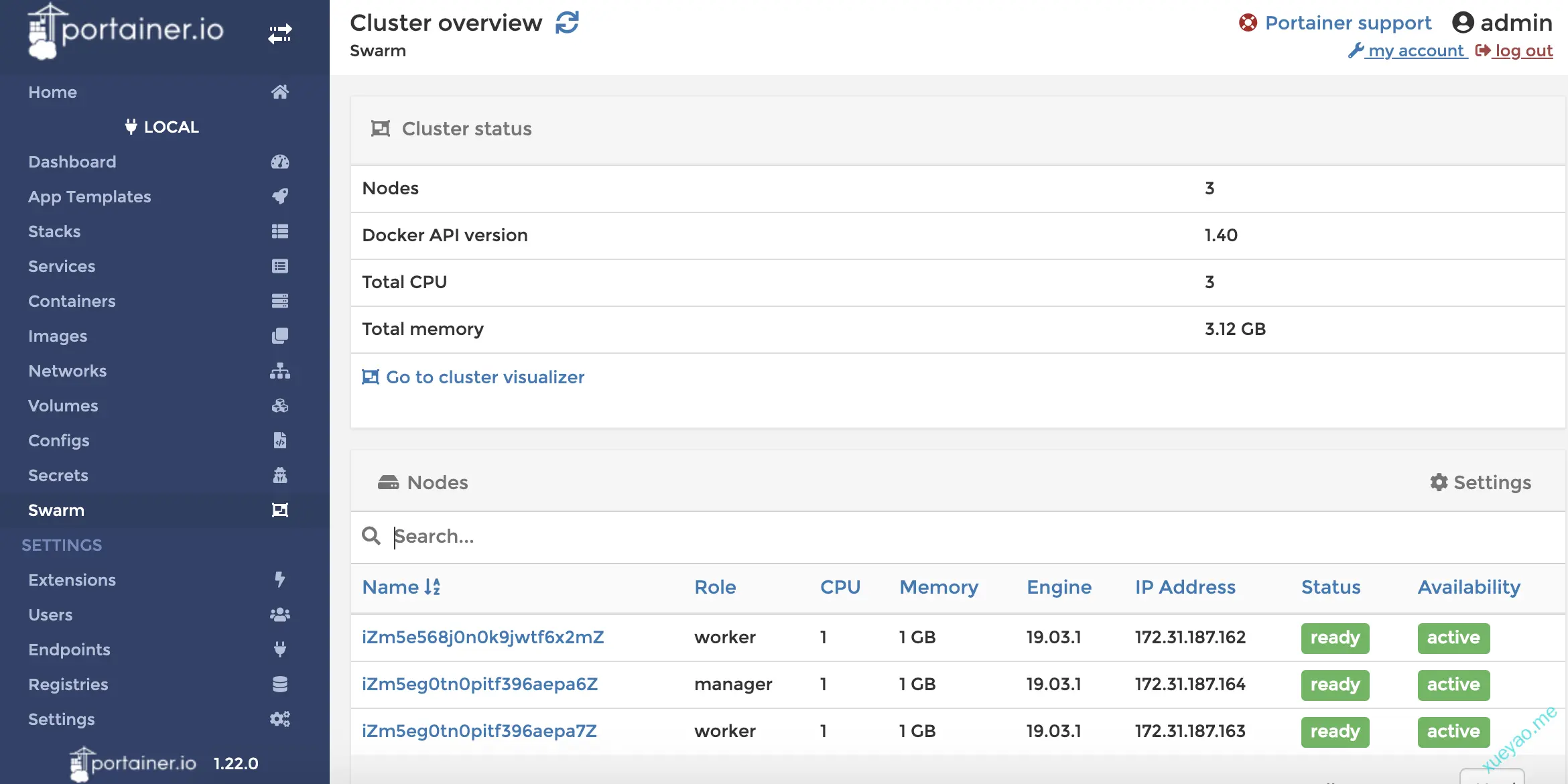 前面利用Docker Swarm快速搭建一个最小集群,也可以在集群上部署服务,但是会发现swarm中并没有提供统一入口查看节点的资源使用情况。这时我们可以用图形化管理工具Portainer帮我们管理swarm集群。