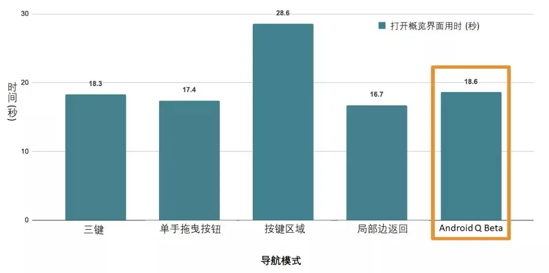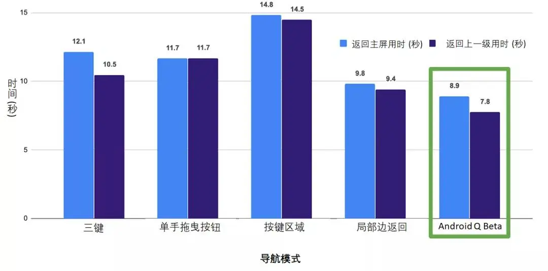 进一步的研究表明,在适应新的系统导航之前,用户会经历一个明显的调整阶段 (以便熟悉各种不同的导航操作)。在 Android Q 模式下,返回手势在最初 3 天的使用频率较低,但过了这段时间之后,用户每天进行返回操作的次数将与三键导航及 Android P 导航中的次数持平。
