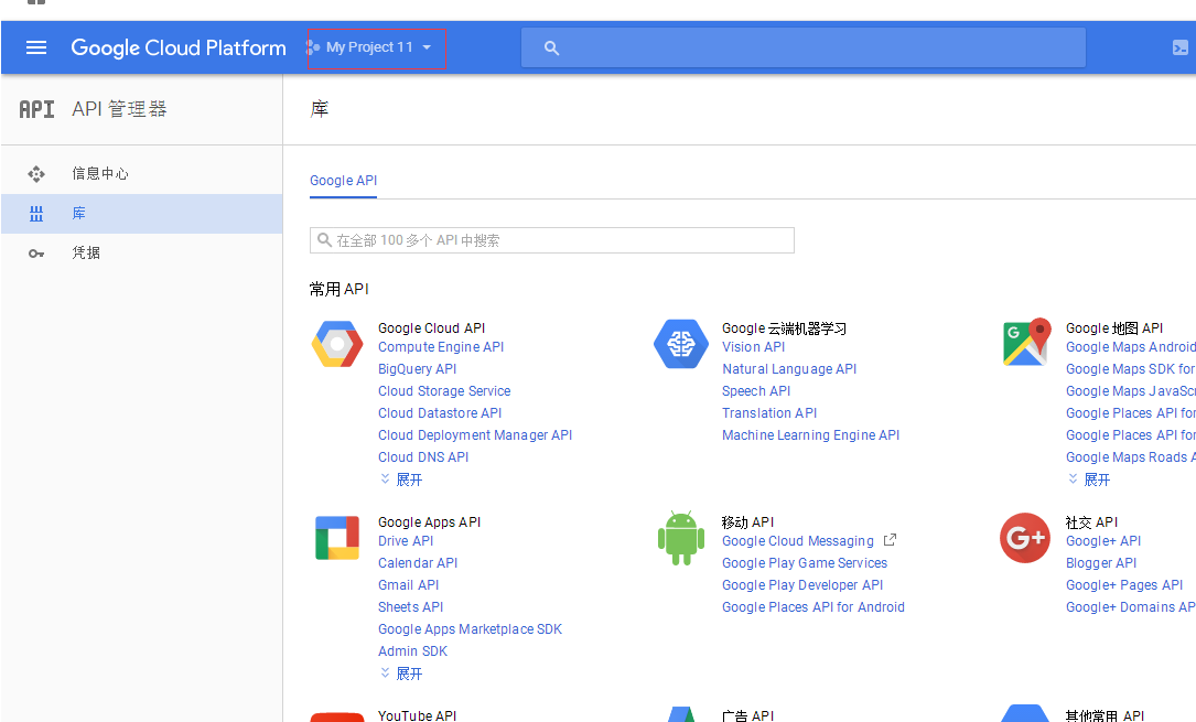 Google APIs后台 地址 步骤: 1、进入Google APIs 后台之后,选择一个专案(即创建好的应用名称)点击侧边栏,选择“API 管理员”。