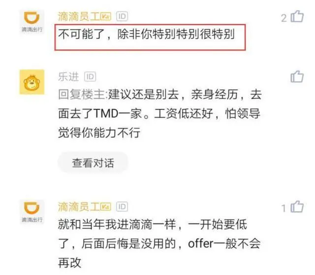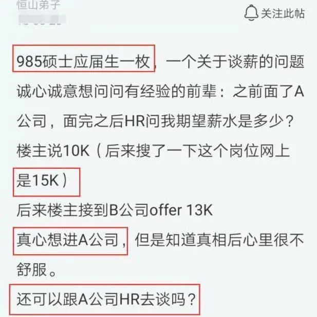 有网友说就和我当年面试一样,一开始工资要低了,现在后悔已经没用了,因为offer一般不会再改。除非你特别优秀,要知道你工资要高了之后,领导对你的期望会很高,如果你能力达不到要求,那也很难留在公司。