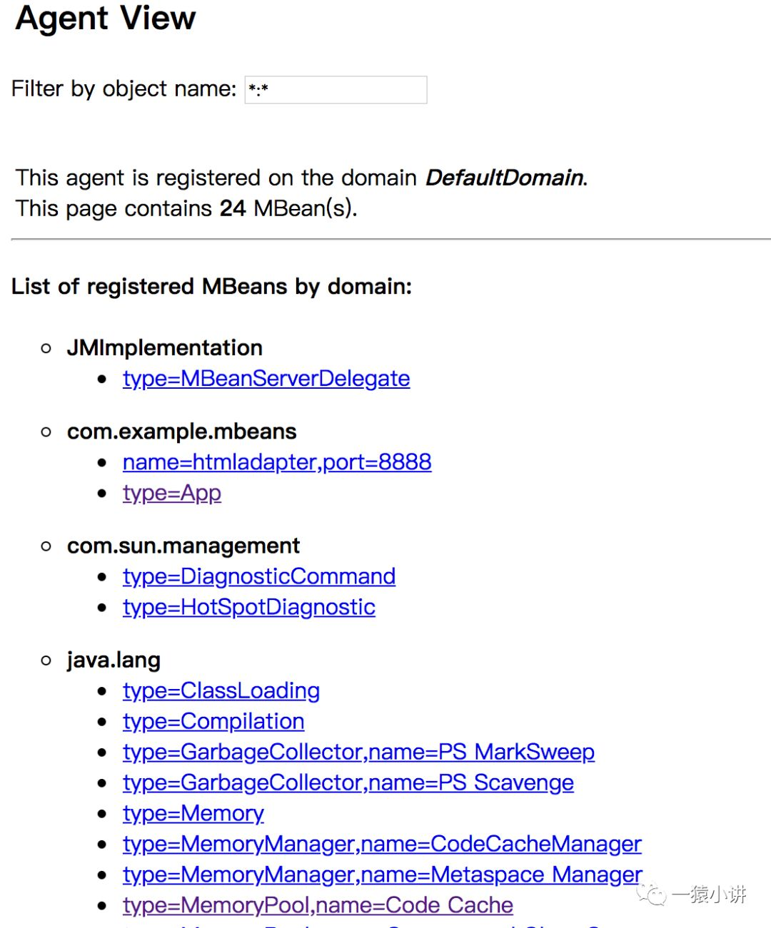 其实上面这些实现方式都不是本次的重点,如果你稍微了解一下 JMX,则会惊喜的发现,上面的实现都相对比较繁琐,因为 Java 中已经实现了大部分系统监控指标的获取,并且提供 HTML 页面来展示监控指标,非特殊情况下,其实无需再为监控管理应用,单独再开发展示界面啦。
