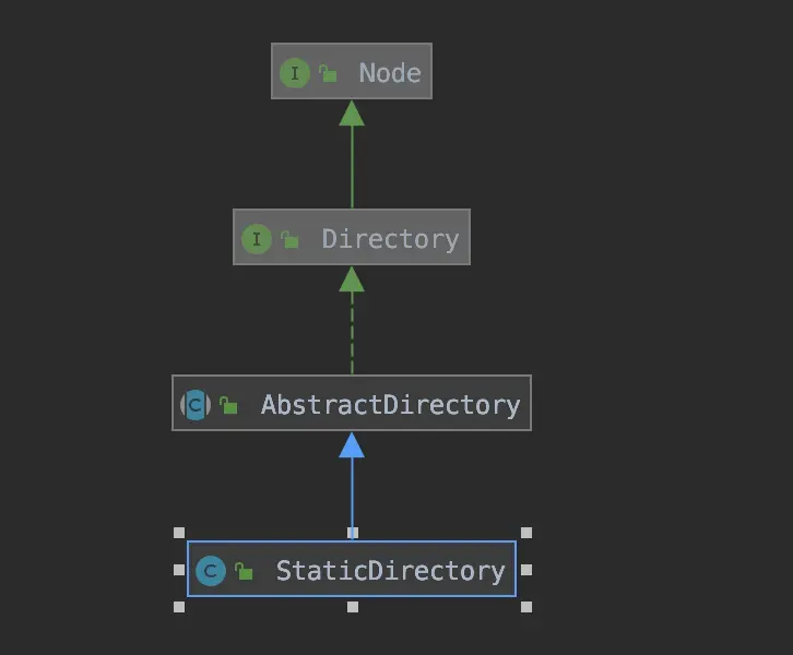 Directory是Invoker的抽象,首先看下Directory的类的继承图,子类是StaticDirectory和RegistryDirectory.一个静态和动态的的实现.StaticDirectory是作用于静态的Invoker,