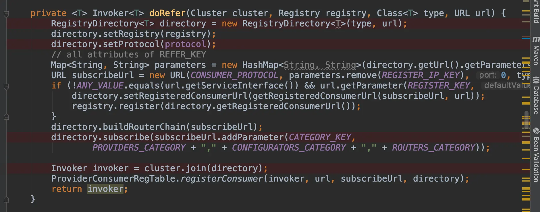 RegistryDirectory的doRefer方法,主要是用Cluster的join方法将RegistryDirectory转换成Invoker对象,这里默认是FailoverClusterInvoker对象.也就是默认是实现FailOver的集群容错(这个上一篇中分析过).