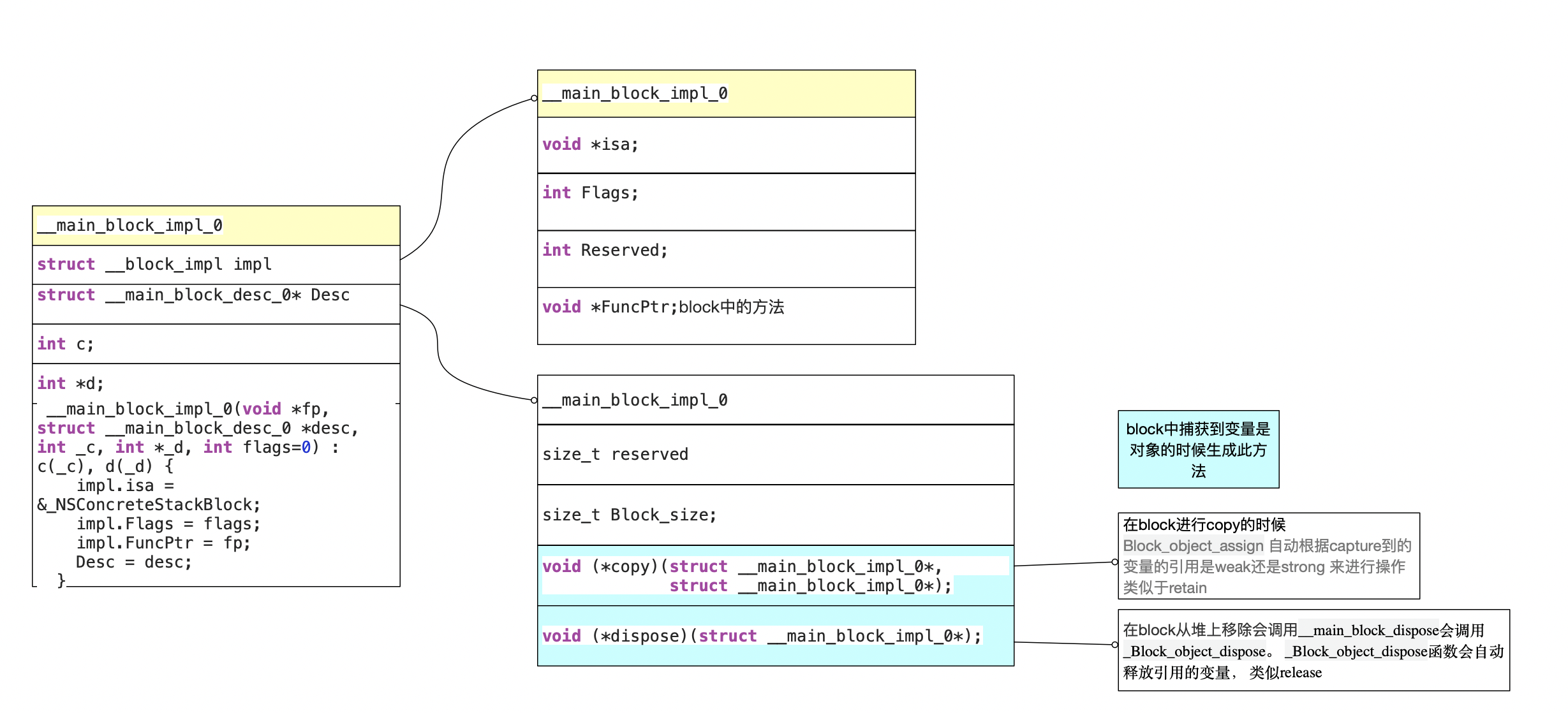c. 我们先看一下__ main_block_impl_0结构体和 __ main_block_func_0 还有__main_block_desc_0_DATA都代表写什么