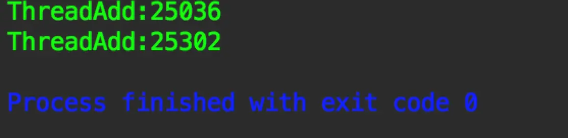 这段代码创建了两个实例,并分别在两个线程执行它们各自的方法。代码执行输出如下: