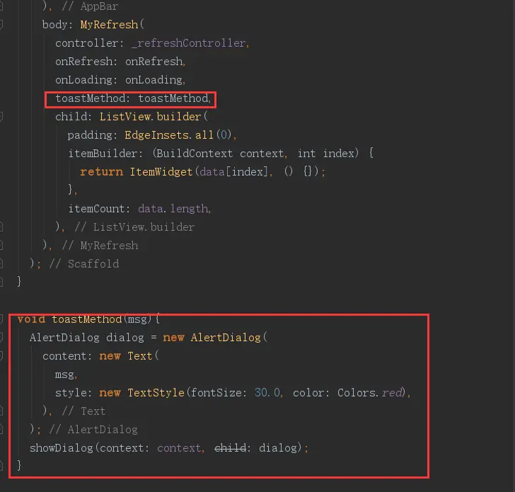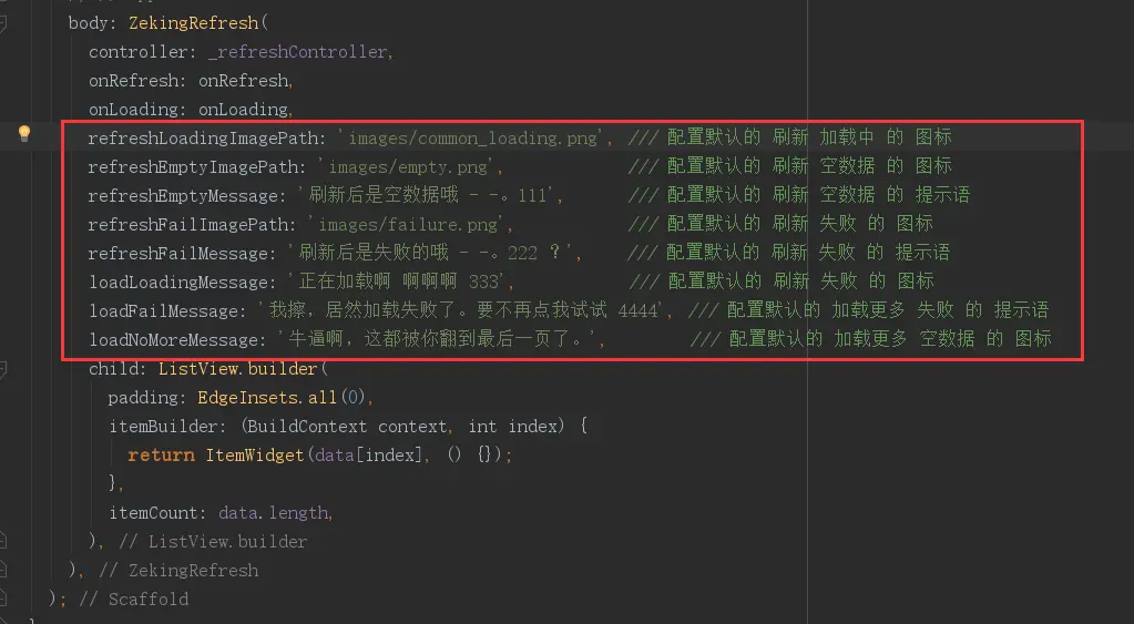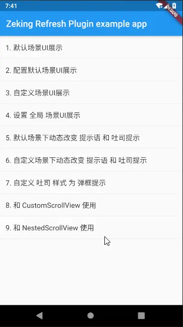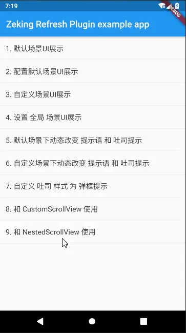 toastMsg是用来谈吐司提示的,默认已经实现了toast,当然你不满足于默认的吐司样式, 可以自己去定义,也可以弹一个dialog,或者打印一个log,到时候传一个方法给我就好了, 具体的看ZekingRefresh的toastMethod参数,下面