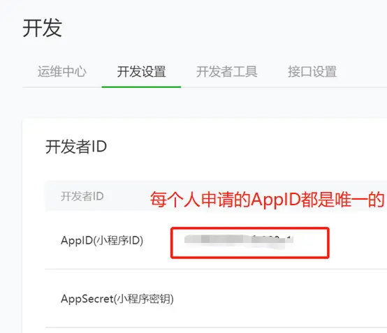 ⑥ 点击开发设置 即可看到APPID