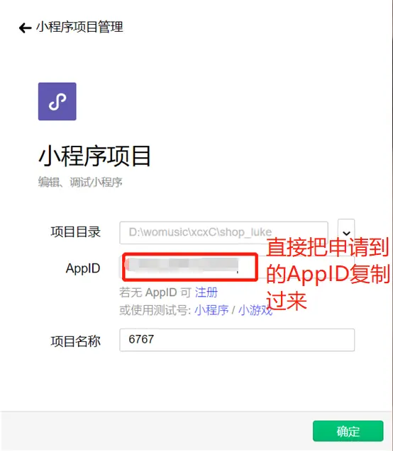 ⑦ 注意:无论在哪里登录微信开发工作只要填上这个APPid就是你的账号了 即可使用自己的公众号账号去写项目