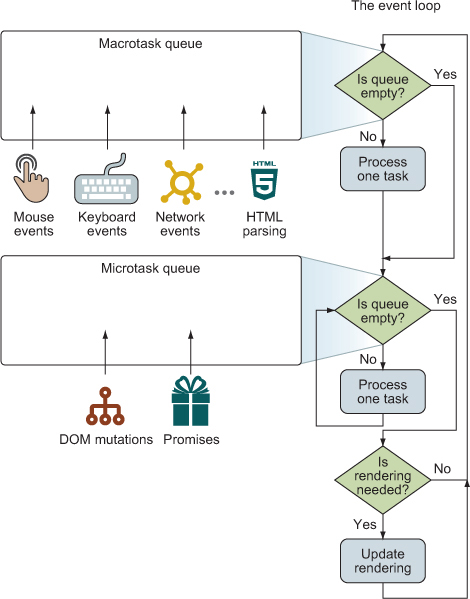 - 每次回调之后,只要没有其他JavaScript处于执行中