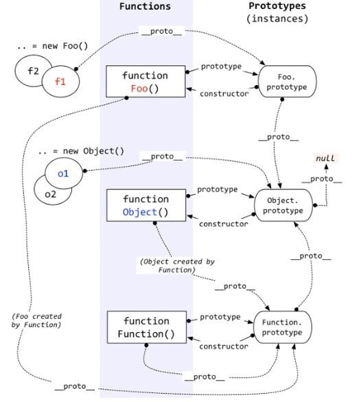 在传统的 OOP 中,首先定义“类”,此后创建对象实例时,类中定义的所有属性和方法都被复制到实例中。在 JavaScript 中并不如此复制——而是在对象实例和它的构造器之间建立一个链接(它是__proto__属性,是从构造函数的prototype属性派生的),之后通过上溯原型链,在构造器中找到这些属性和方法。