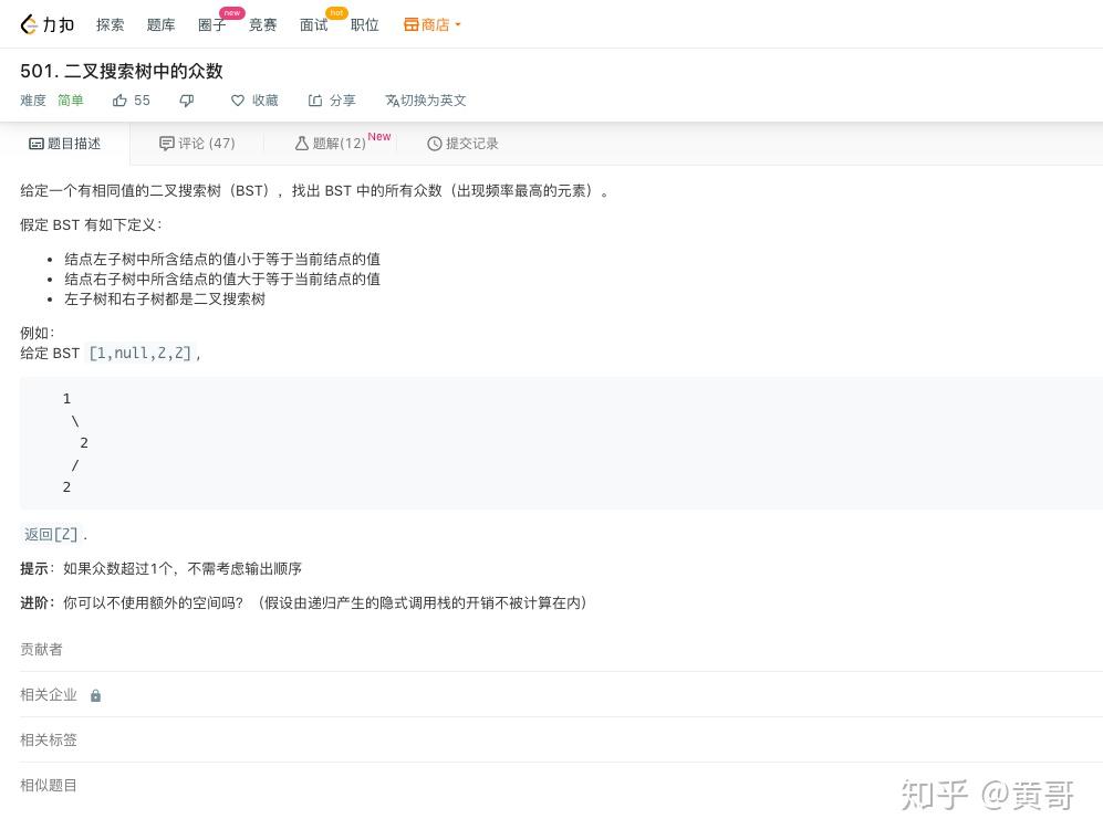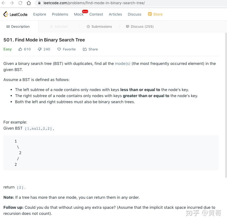 Leetcode 501 题,Find Mode in Binary Search Tree,解题思路。