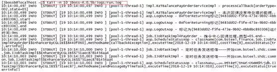 如图在这1000行只有一条带有系统异常的日志信息,那就只会显示一条信息,如果一条都没有则显示空,同理当使用tail -f的时候只有出现带有系统异常的日志才会显示,并且一旦有这样的日志就会显示,有多少条就显示多少条。