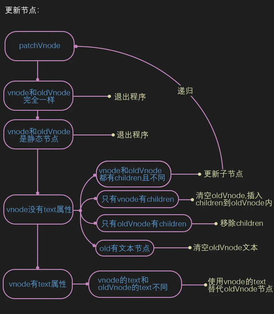 patchVnode(oldEndVnode, newEndVnode) // 递归调用