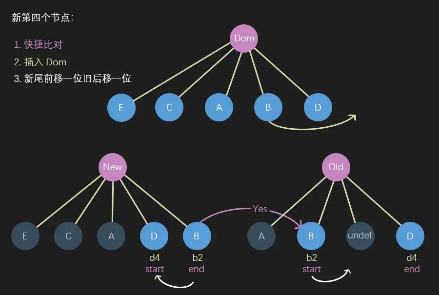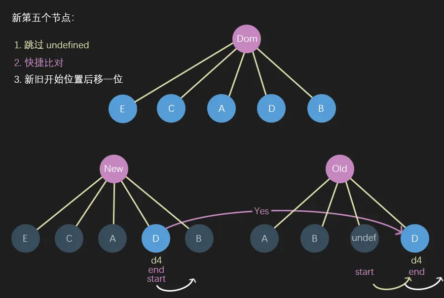 为什么会有undefined,之后的流程图会说明清楚。这里只要记住,如果旧开始节点为undefined,就后移一位;如果旧结束节点为undefined,就前移一位。