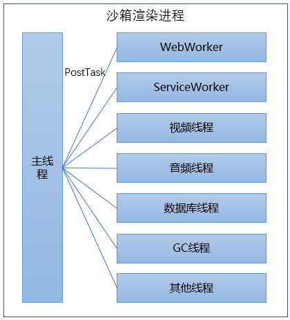 - 内部线程:Blink和V8会创建几个线程处理web audio,数据库,GC等