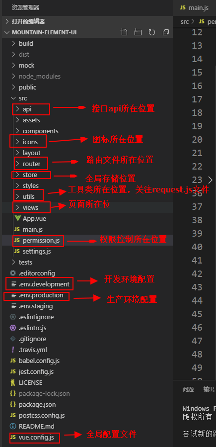 工程mountain-element-ui是基于 vue-admin-template扩展的, 主要实现权限管理系统,包括用户管理、