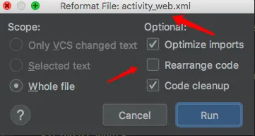Android Studio3.5 布局文件、xml格式化顺序错乱解决 Joker_Fu 2019-08-22 2,260 阅读1分钟 Android Studio3.5 布局文件、xml格式化顺序错乱解决 从试用版开始使用,昨天很多人更新了3.5正式版,均发现布局文件格式化的时候顺序错乱问题,都以为是Android Studio3.5的bug,均在坐等更新。接下来2张图搞定格式化错乱问题: 1 2 按图示顺序去掉中间选中就可以了,如果还不行请站起来试试~ 2019-09-04更新 官方方案: [图片]