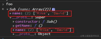 但是,这种继承方式的局限在于:创建实例对象时,原型中也会存在一份相同的属性、方法。因为该继承方式会调用两次父类的构造函数 -- 一次是在创建子类原型的时候,另一次是在子类构造内部。第一次使Sub.prototype得到了name属性,第二次使得在新的对象foo上创建了属性并屏蔽了原型上的同名属性。