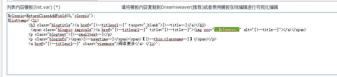 | 输入表单替换html代码 | 增加字段后自动生成字段显示的html代码内容,增加字段时一般不设置,可增加字段后再修改。 |