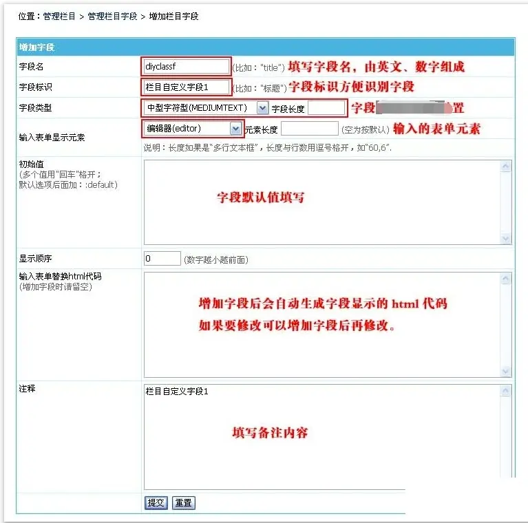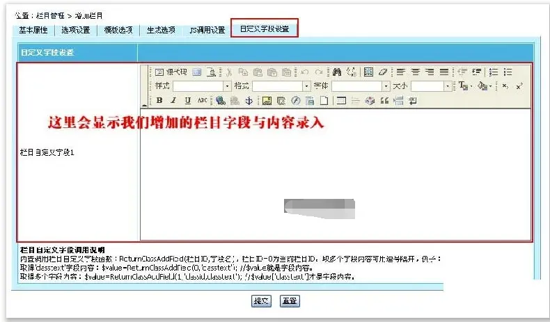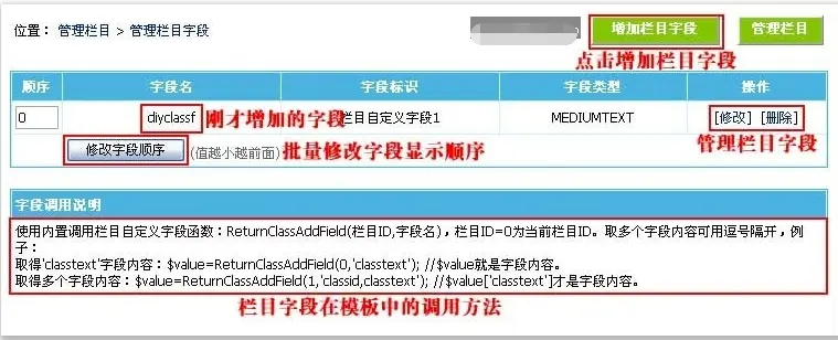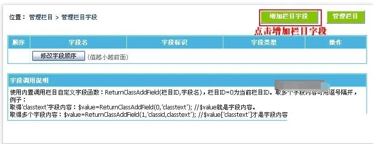 1、增加栏目字段后, ,就可以看到我们增加的字段: |
