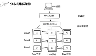 这里的SQL层采用的是MySQL实例,存储引擎层是有三个数据节点和协调节点编目节点组成。其中数据节点就是用来存储数据的,协调节点不存储数据,是用来把MySQL的请求进行路由分发到数据库节点。编目节点用来存储集群的系统信息比如用户信息/分区信息等等。这里用一个容器来模拟一个物理机或云虚拟机,这里设置的是MySQL实例在一个容器里,编目和节点和协调节点放在了一个容器,三个数据节点分别放在一个容器,三个数据节点构成了三个数据组,每个数据组三个副本。Web应用的海量数据是通过分片切分的方式分散给不同的数据节点,像这里的数据ABC通过分片打散到三台机器。