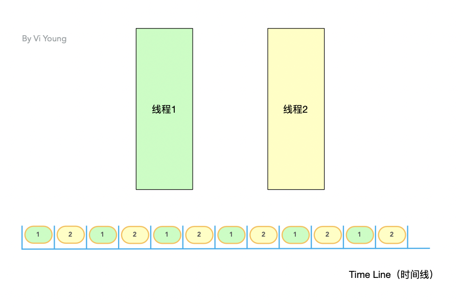 在多个线程运行的时候,其实是把CPU的使用时间分割成了无数个小份,然后根据优先级去给这些线程分配时间,CPU在这些小时间块中快速切换,给用户的感受就是多线程同时在运行,如下图: