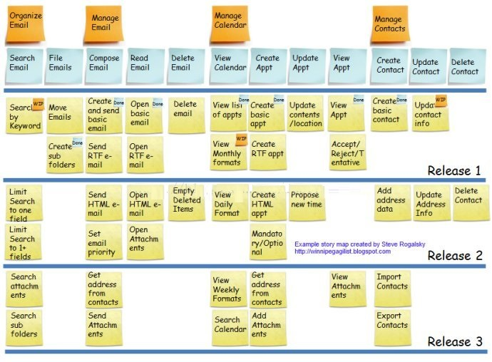 整个故事地图会包含很多故事点,但在一定时间完成所有功能是不太可能的,团队要综合考虑商业价值、市场现状、实现难度等方面因素,确定接下来几个发布的内容,以及每个发布预期能达成的目标。
