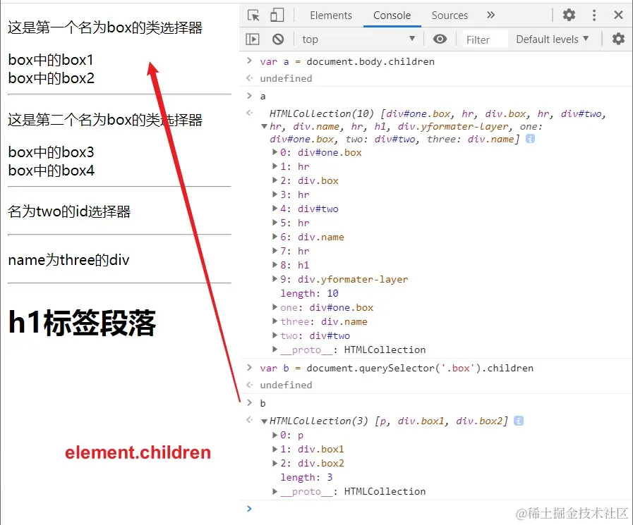 返回元素的子元素集合,是一个HTMLCollection