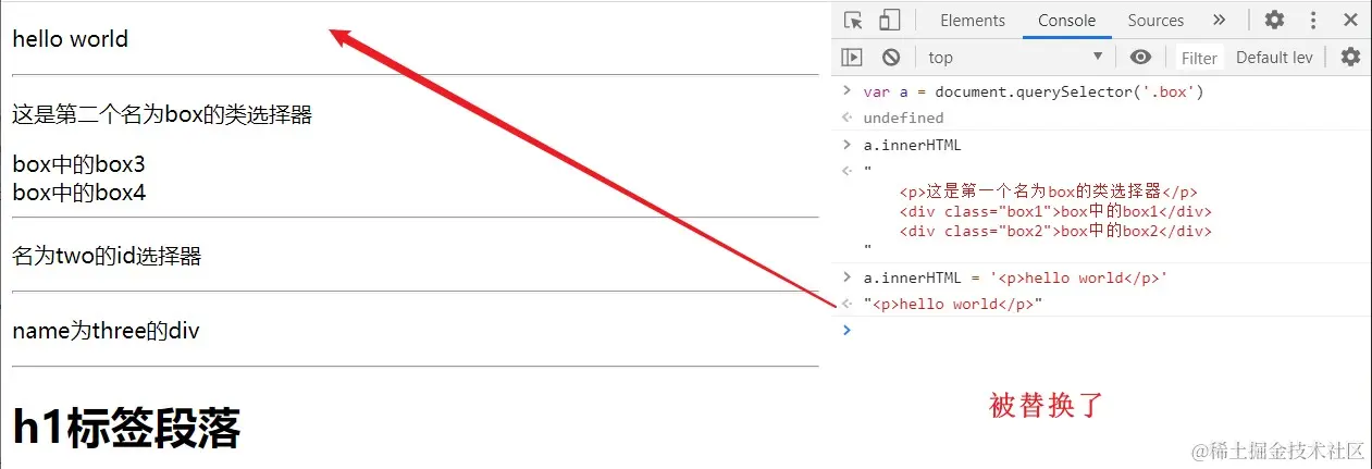 获取描述元素及其后代的序列化HTML片段,还可以从指定节点替换元素