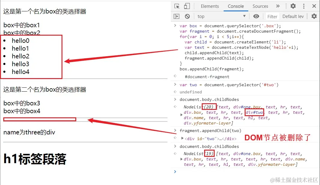 - 当我们把现有的DOM上的一个节点插入给DocumentFragment,这个节点会从原DOM上被删掉。