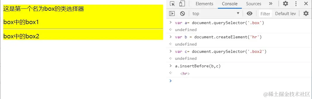 在某个元素之前插入元素,接受两个参数:插入的元素和插在那个元素位置之前
